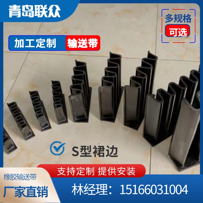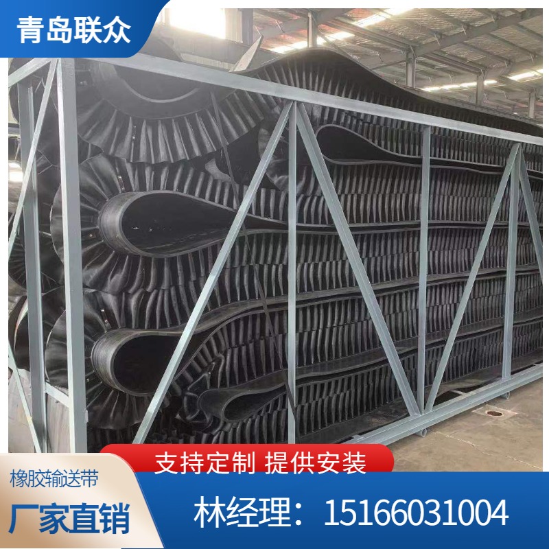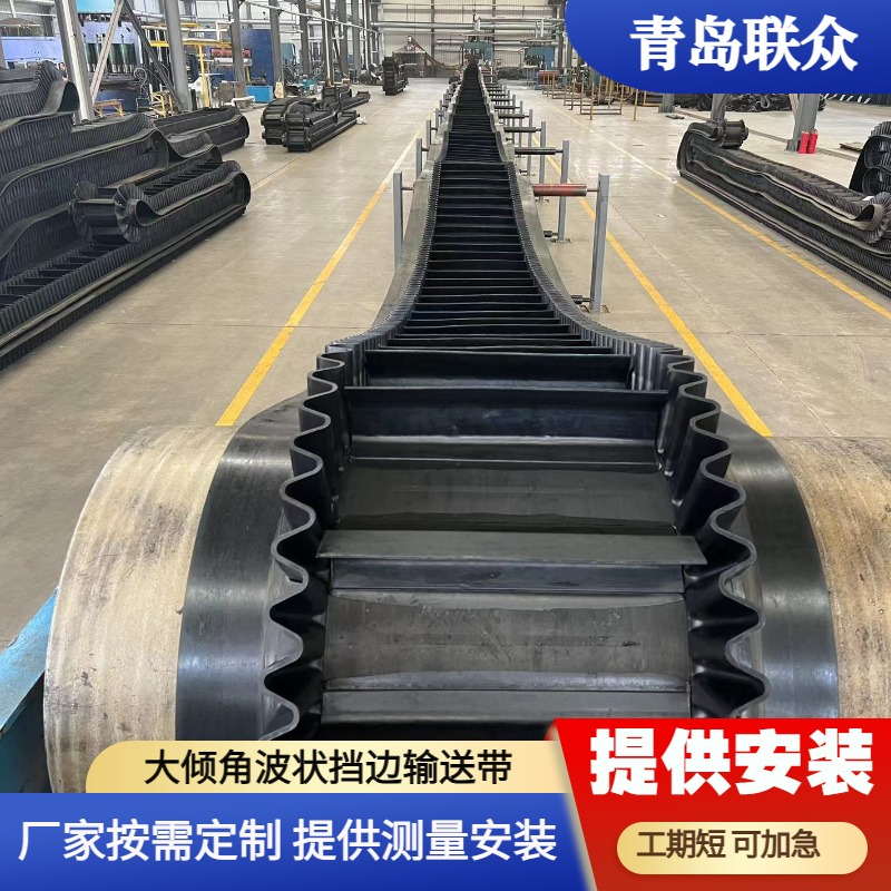 采砂船输送带 港口挖沙船大倾角挡边带 带挡板隔板爬坡皮带 联众