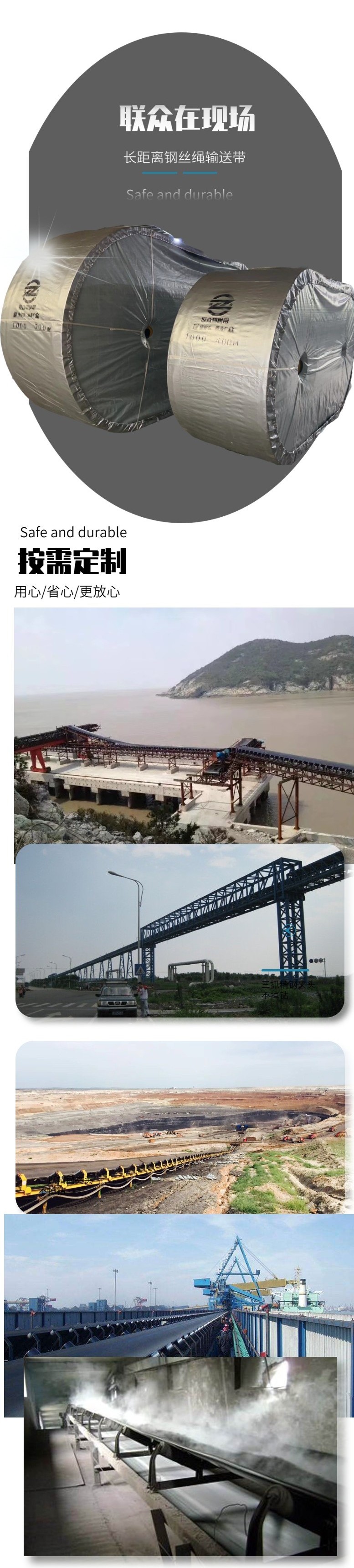 运输带、钢丝绳、输送带、输送机、现场接头、矿用皮带机、管状机皮带、固定式皮带机、输送线路设计、胶带接头卡子、提升带接头卡子、提升带接头夹具