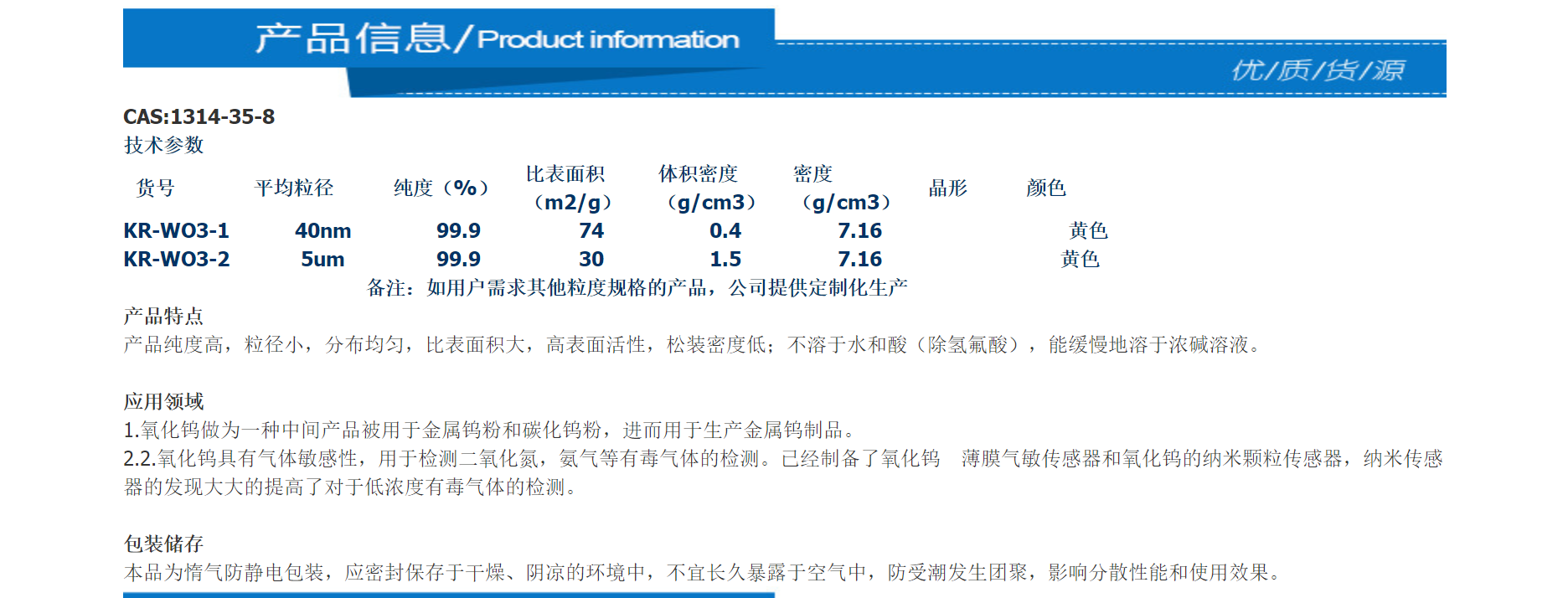 99%超细三氧化钨 工业级试剂 600目 800目 1000目 桶装黄色粉末