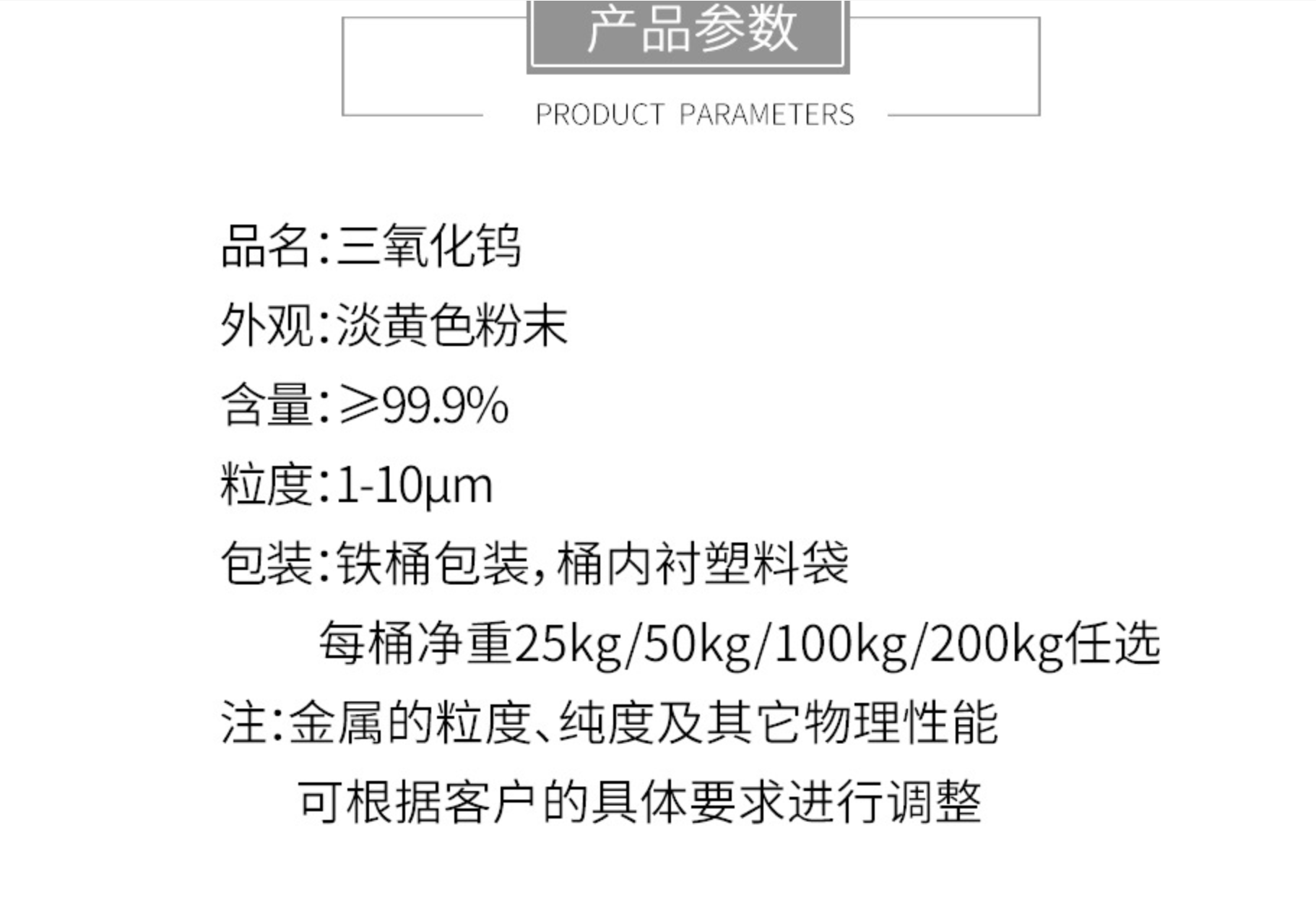 99.5%三氧化钨 陶瓷器着色剂 800目 1000目 1500目 工业级 分析试剂