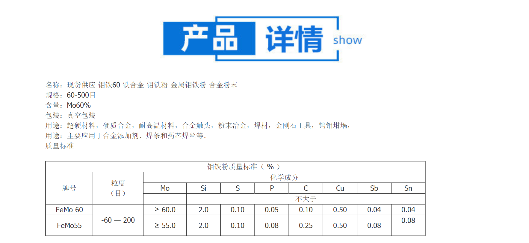 99%金属超细钼铁粉 高纯钼粉末 300目500目喷涂钼粉