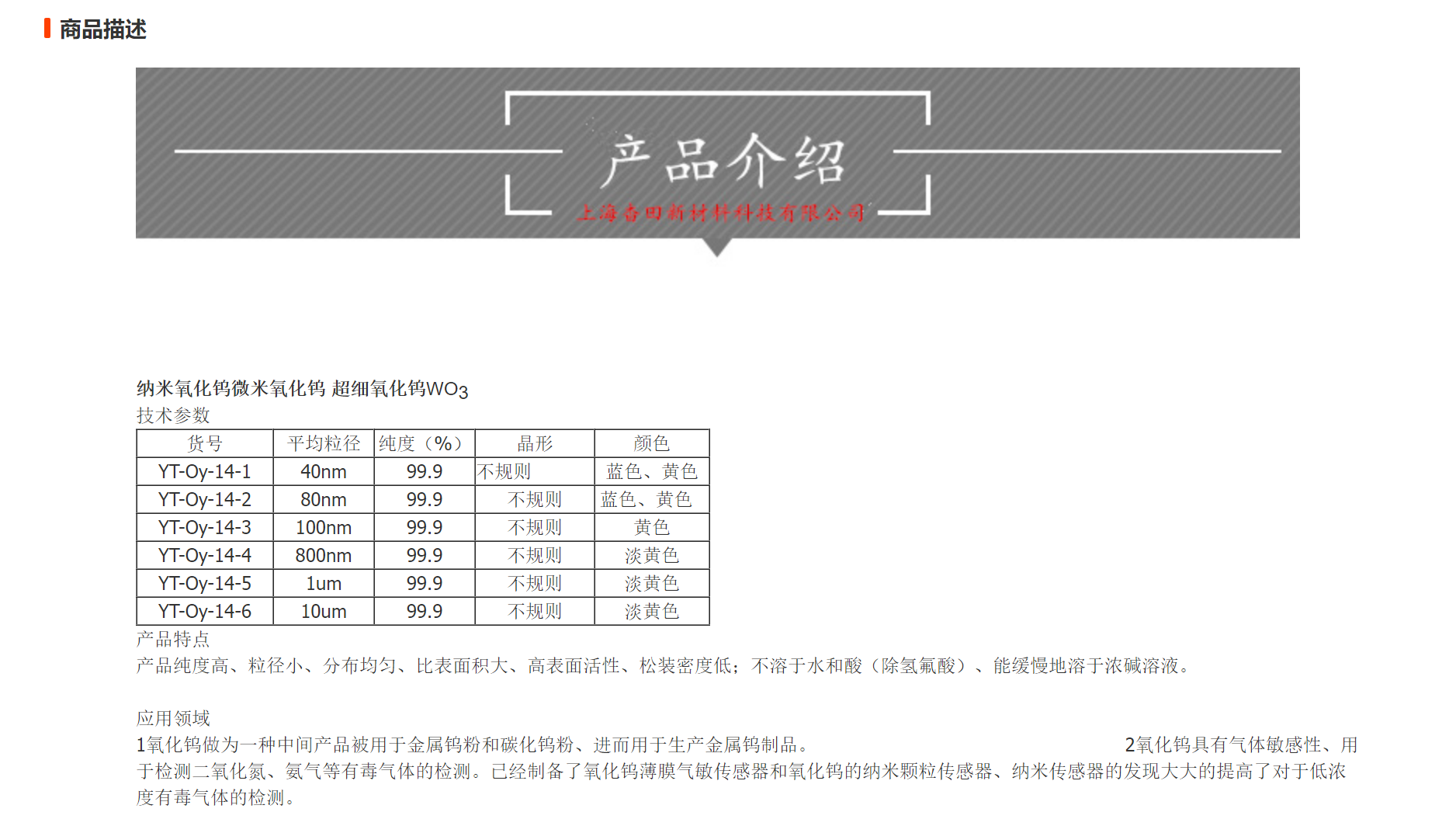 40nm纳米三氧化钨 高纯超细 100nm300nm 氧化钨粉末 99.9% WO3