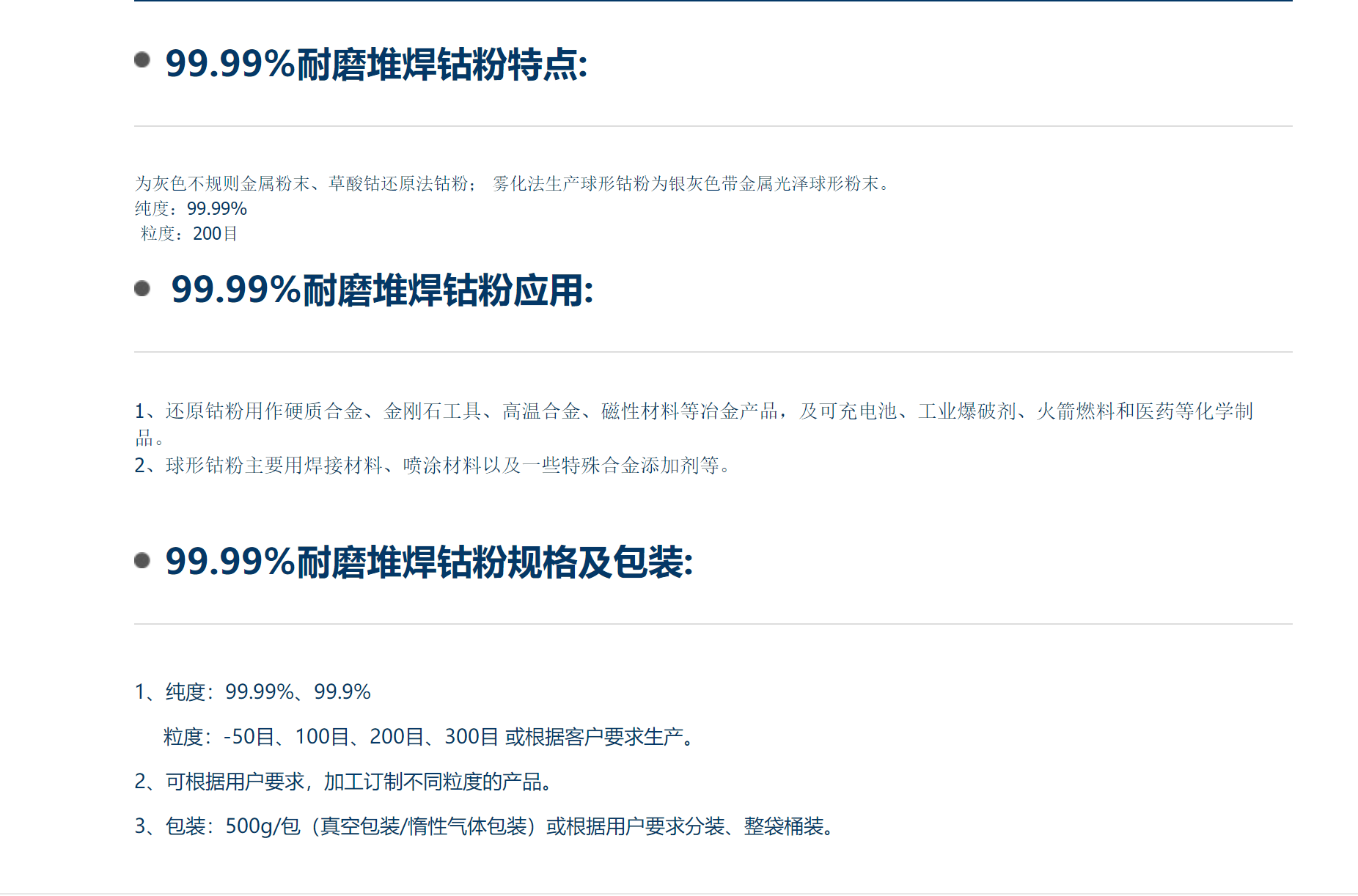 100-3000目金属 超细微米钴粉 99.9%含量 钨钼制品添加