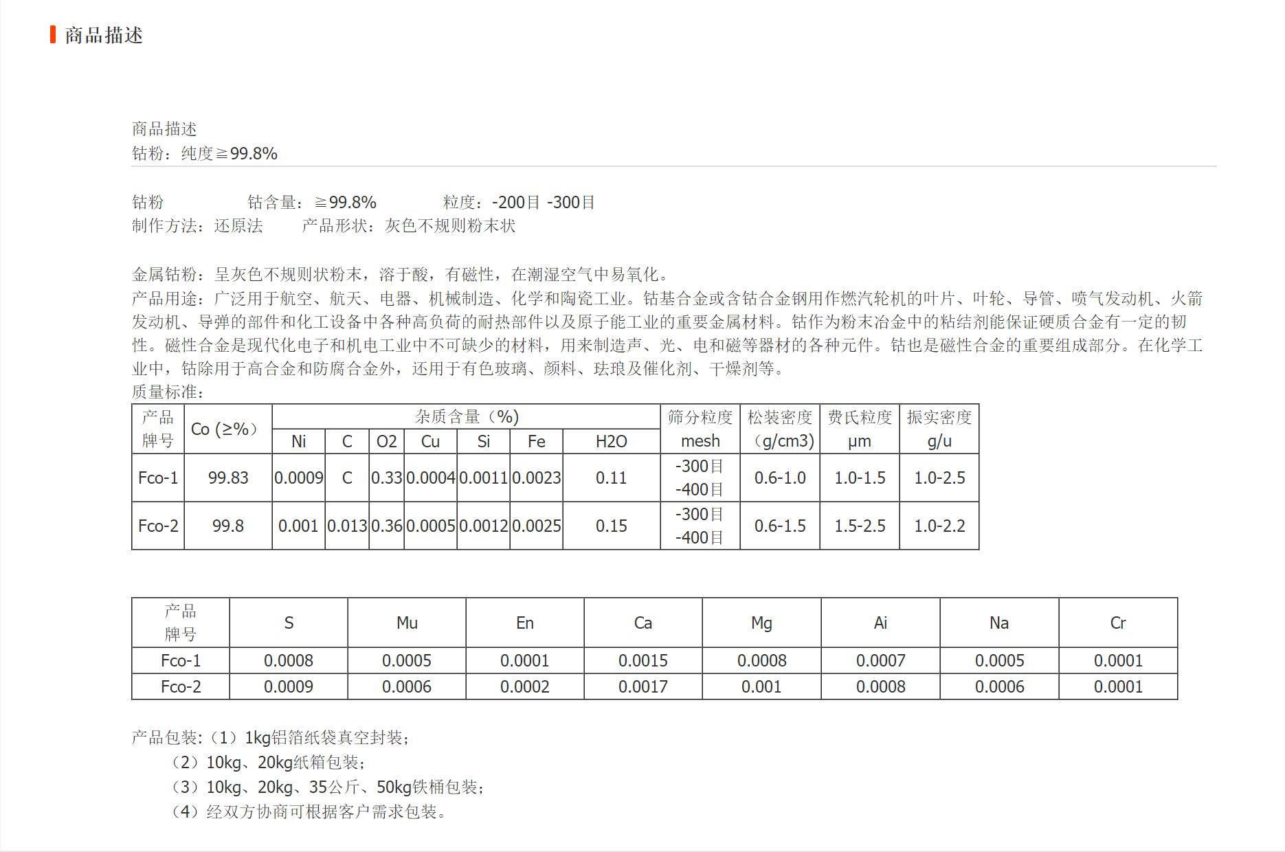 超细微米钴粉 200nm 300nm 500nm 钴粉末 钨钼制品添加
