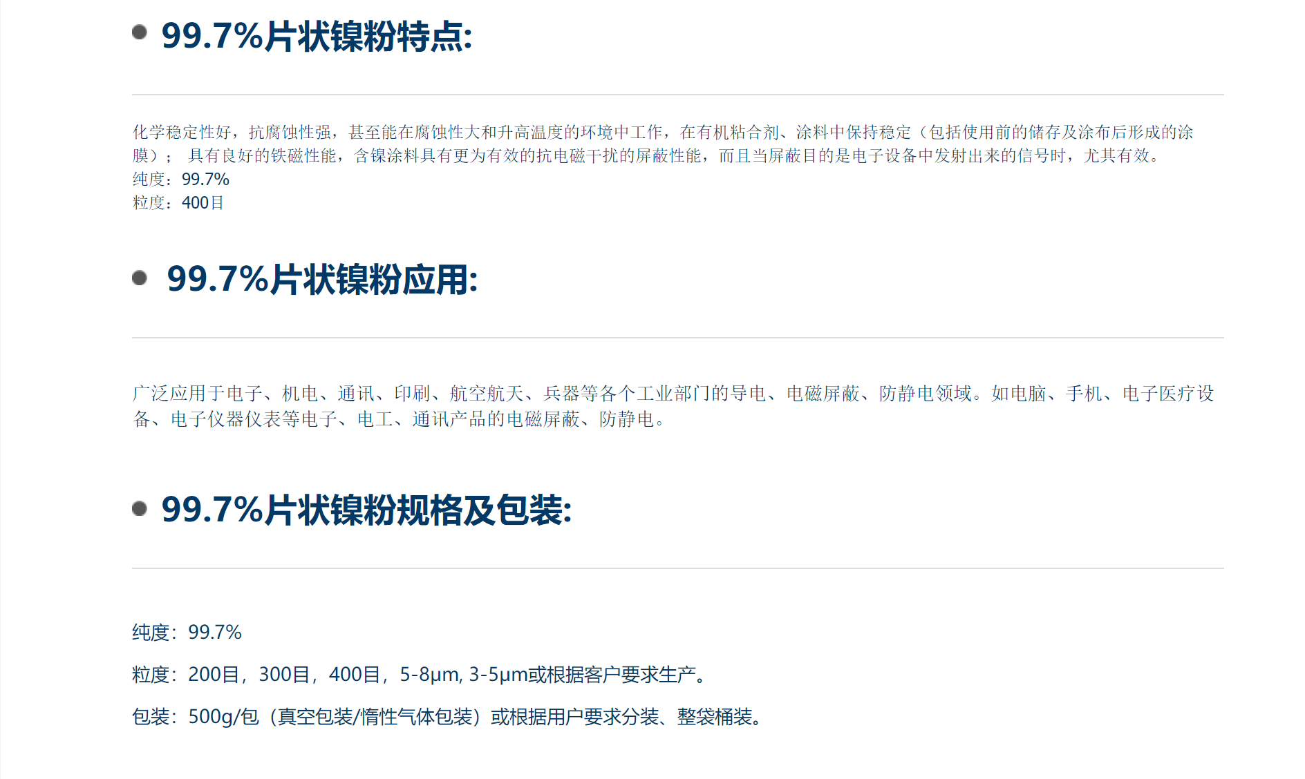 99.7%片状镍粉 金属400目800目 超细微米级镍粉末 导电屏蔽材料