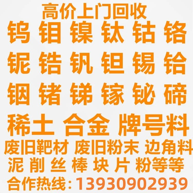 镍废料、镍边角料、硬质合金、钼片收购、钼丝回收、回收钼铁、冶金钢材、回收钽块、回收钽板、回收钨板、回收纯钽、钼电极棒、回收钛合金、回收钼靶材、回收钨废料、整板切小块锡锭、废旧金属边角料、收购钽电容钽丝、各种废金属回收