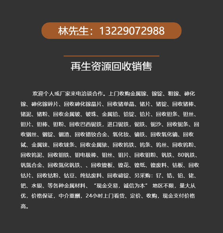 钼铁回收全国免费上门收购稀有金属铌铁钨铁钒铁