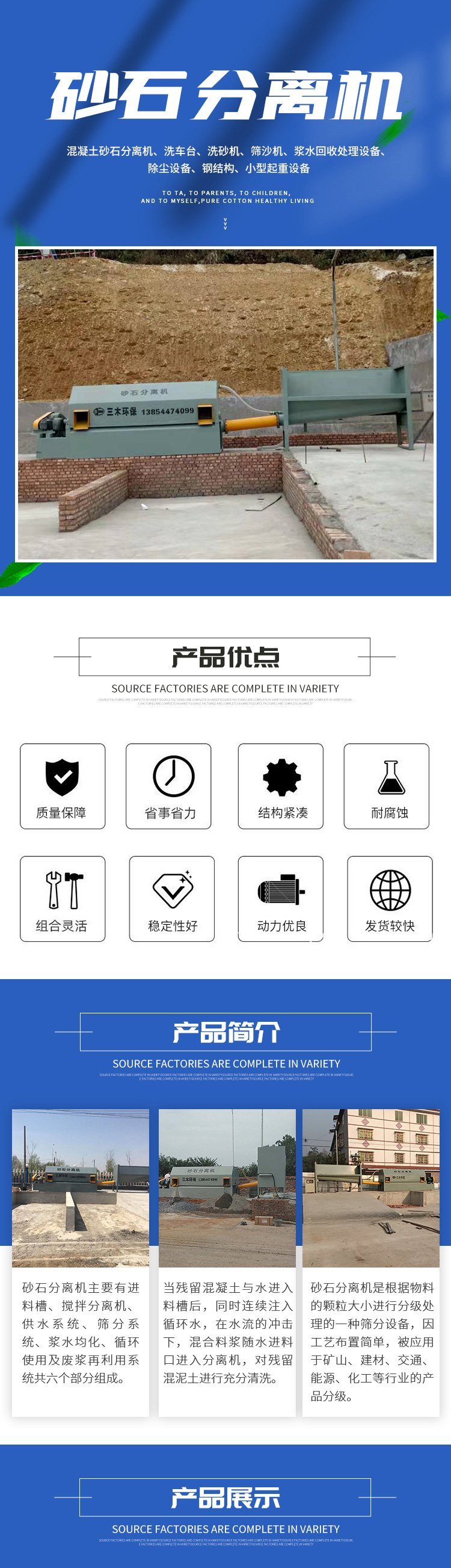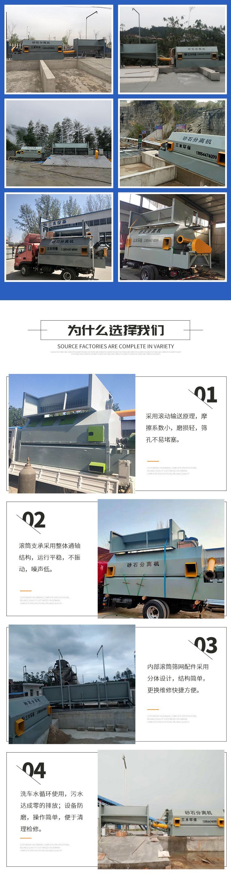 滚筒砂石分离机、龙门洗车房、螺旋砂石回收机、振动砂石分离机、锥形砂石分离机