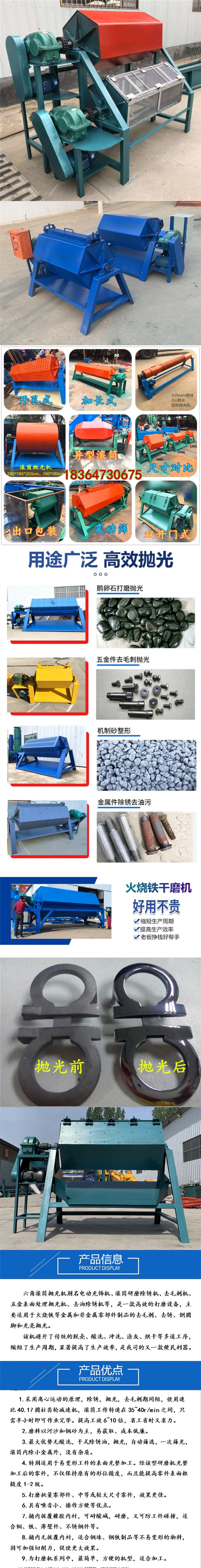 火烧铁可注水六角滚筒抛光机 石块鹅卵石去棱角研磨机