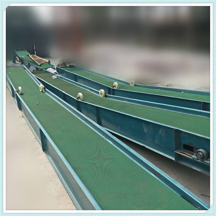 皮带。分拣机通常采用800mm带宽、2~3mm厚绿色PVC输送带,装卸机通常采用800mm带宽、2~3mm厚绿色PVC防滑输送带。PVC输送带美观、轻便,适合硫化热粘合,略高