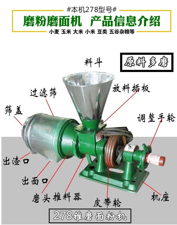 宏德 180家用小型磨粉机 三相电黄豆磨面机 自动上料278面粉机