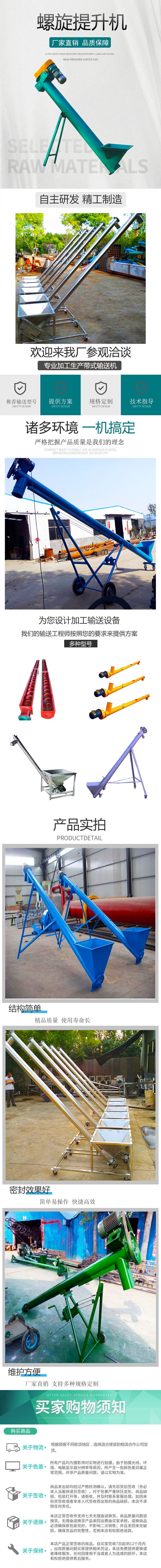 螺旋提升机,是通过改变势能进行运输的大型机械设备,如矿井提升机、过坝提升机等。螺旋提升机主要用于输送粉状、颗粒状和小块状物料,如农药 调味品、添加剂、化工品等,螺旋提升机不适宜输送易变质、粘性大的和易结块的物料。