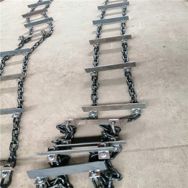 刮板链在安装前,应预先连接好,刮板均匀地分布在链条中。如果是两条链条,要选择长度相等,或按出厂时的配对链条组装。链条不得有扭转现象。圆环链焊缝边朝上,防止链条与链轮发生夹卡现象。