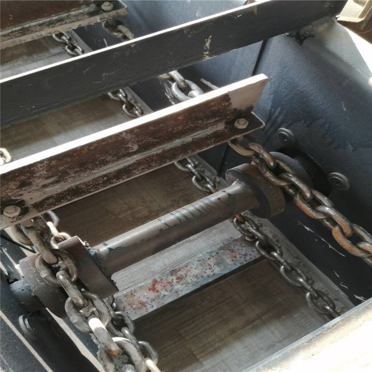 刮板链在安装前,应预先连接好,刮板均匀地分布在链条中。如果是两条链条,要选择长度相等,或按出厂时的配对链条组装。链条不得有扭转现象。圆环链焊缝边朝上,防止链条与链轮发生夹卡现象。