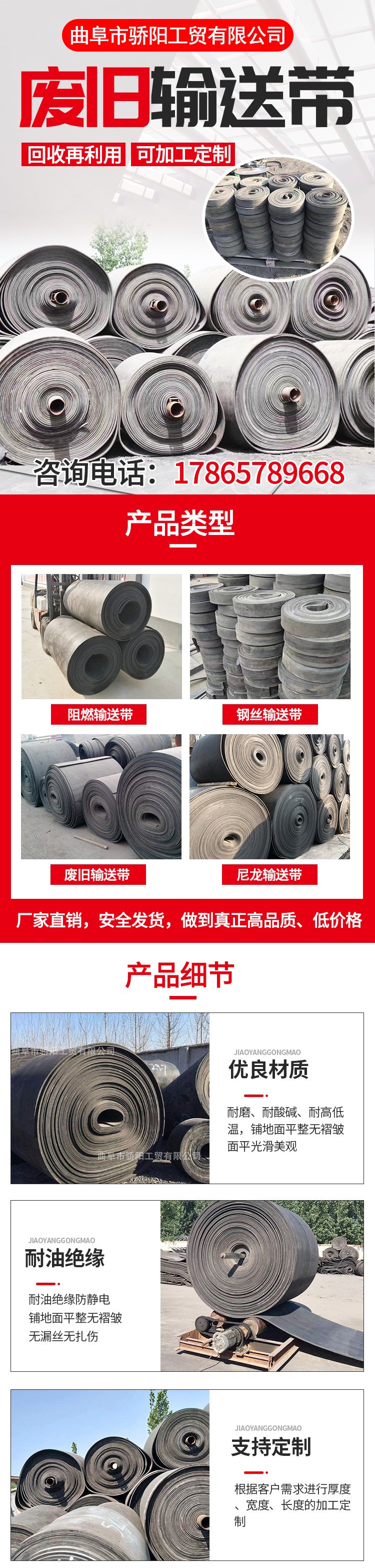 橡胶垫板、环形传送带、废旧输送带、棉线输送带、尼龙输送带、钢丝输送带