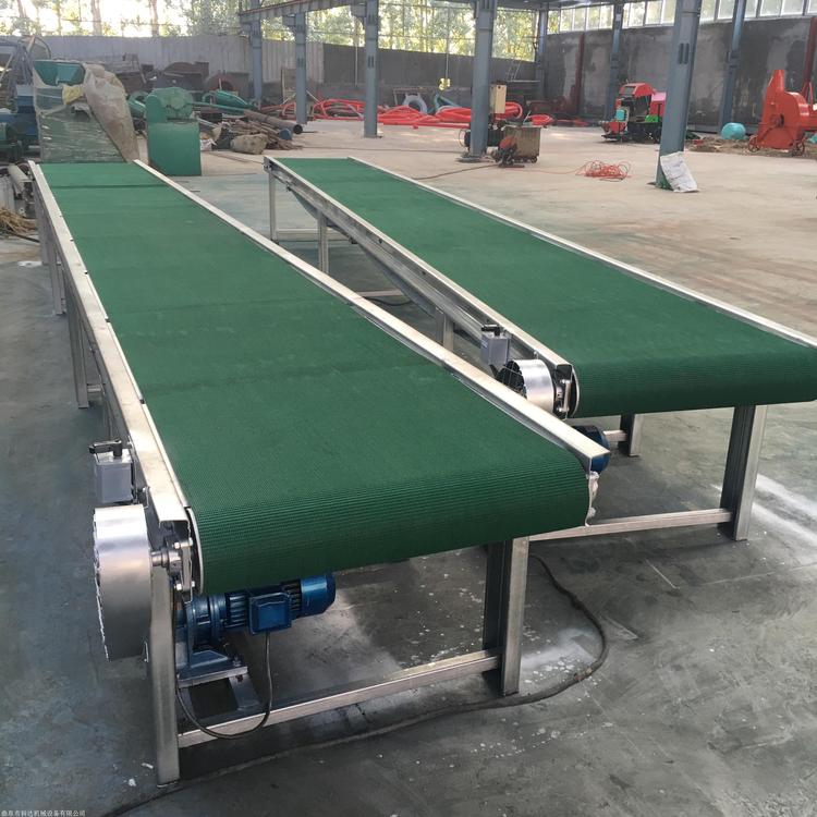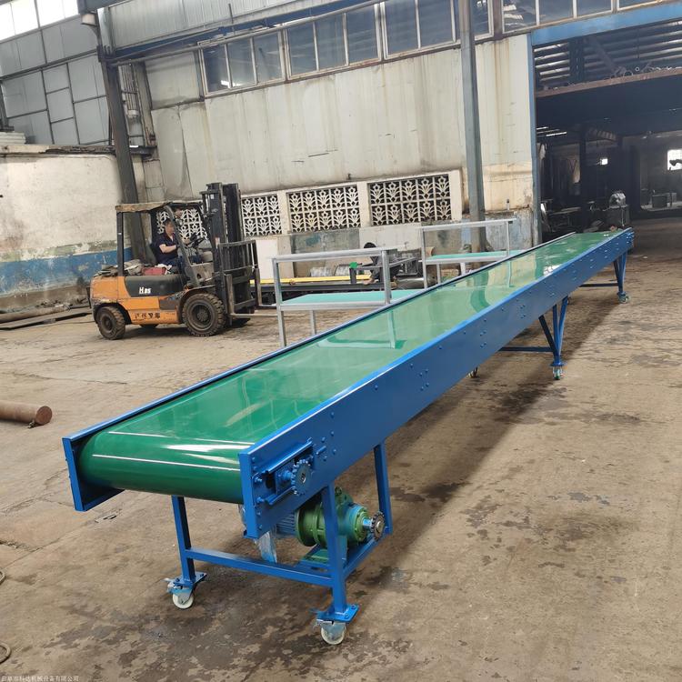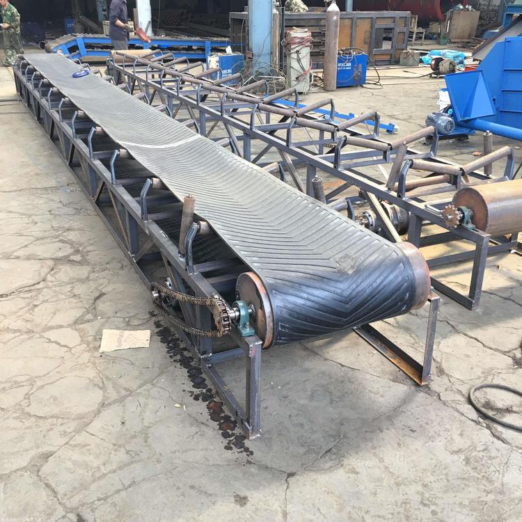 输送距离长、输送量大,易于输送粒状、粉状、小块的物料及袋装物料,如:石、化肥、水泥、煤等.2、输送机长度可以根据用户要求而定.3、被输送物料温度不大于60℃,可以温度在+40℃至-20℃范围内使用.4、能量小,结构简单,噪音小,维修方便 带式输送机(皮带输送机),用来输送散件或成品物料,根据客户输送物料的要求,可以根据输送工艺要求,也可单台输送,也可与其它设备组成倾斜或水平的输送系统,以满足不同行业的输送需要,移动皮带输送机是一种工效高,使用,机动性好的连续输送装卸设备。主要用于装卸地点经常变更动的场所,如:港口、码头、车站、煤场、仓库、建筑工地、沙石料场、农场等,用来短途运输及装卸散料或袋装的成件物品。