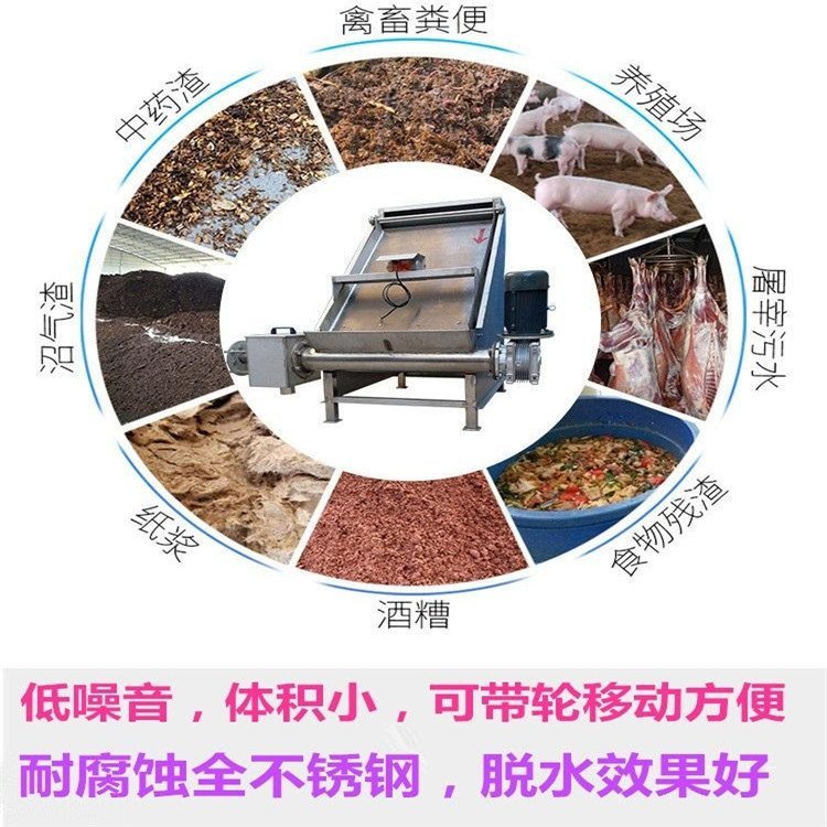 现代化畜禽养殖业的发展,工厂化集约化养殖的兴起,丰富了人们的物质需求,但也带来了畜禽污水的泛滥,造成了对水源、空气、环境的污染。挤压式粪便处理机是畜牧养殖场畜禽粪便粪污脱水的一种设备,它能将畜禽粪便原粪污水分离为液态有机肥和固态有机肥。