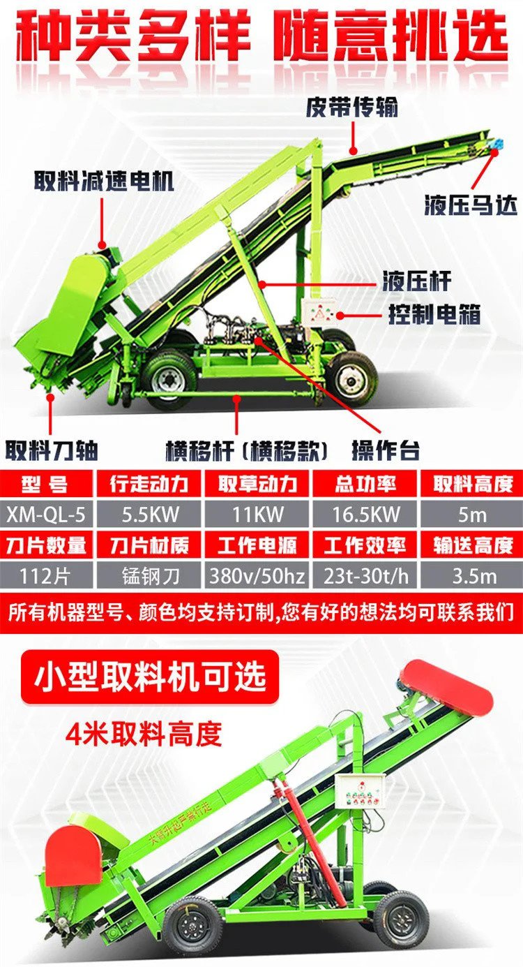 养牛5米高料坑上草机 切割整齐饲草挖料机 横向移动式取料机