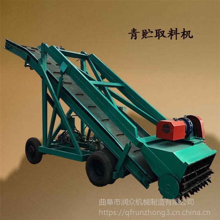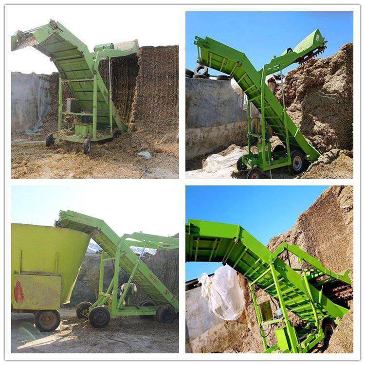 在规模牛场中,青贮取用在饲养管理中是一个很重要的部分,因为奶牛每天青贮进食量约占进食量的一半左右,对于一个千头牧场,每天需要消耗20多吨的青贮,如果人工取用,就需要花费4-6个劳动力;并且在制作青贮时,为了有效保护品质,需要采用铲车等工具尽可能对青贮装紧压实,这样在取用青贮时,特别是人工刨取,劳动强度非常大。皮带送料长5米取料机 窑池内上料机图片 堆积草料池取料机