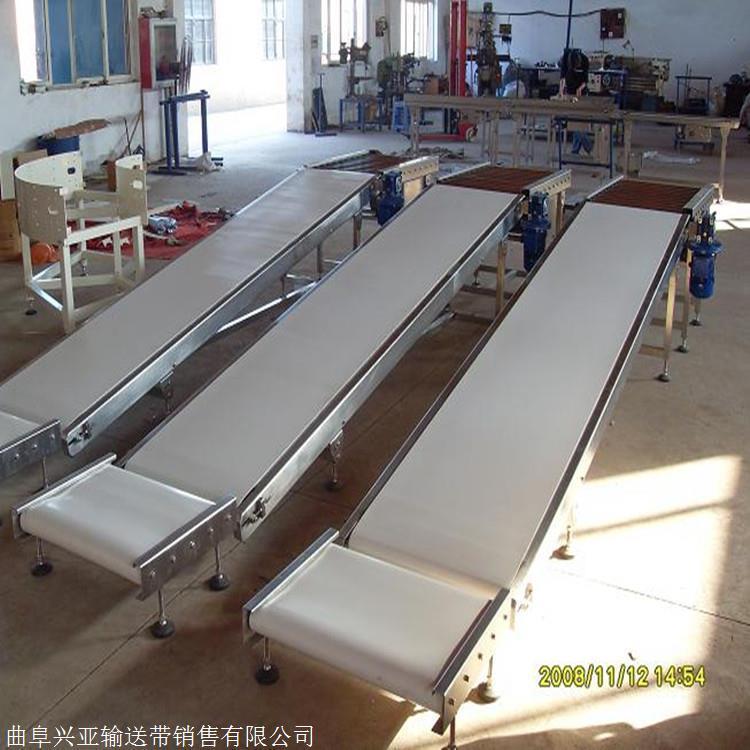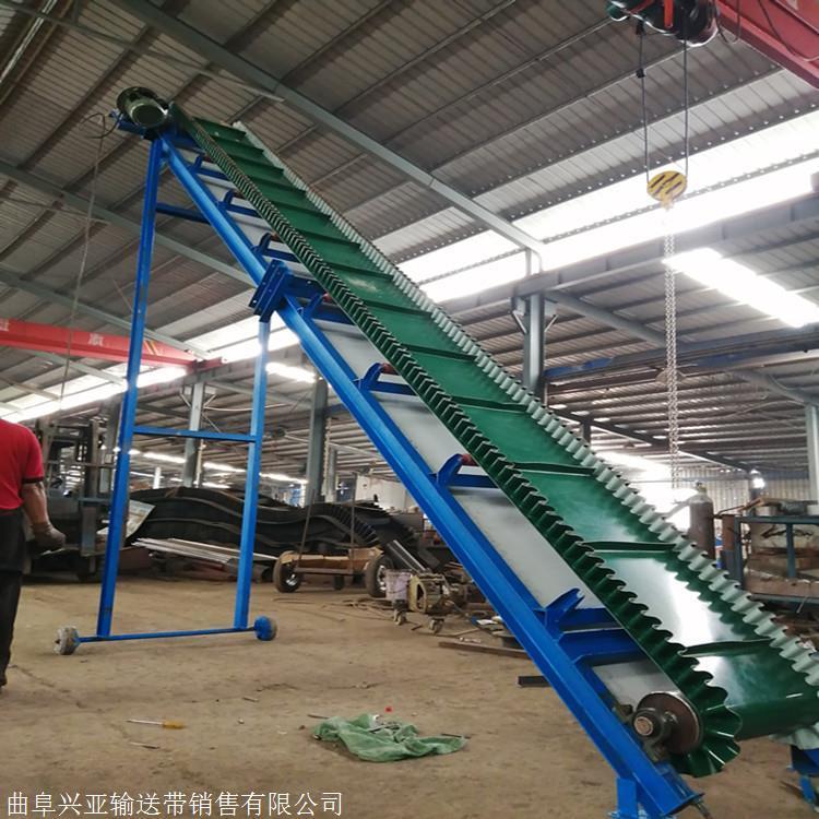 养殖饲料胶带输送机 移动式爬坡上料输送带 带式输送机是一种摩擦驱动以连续方式运输物料的机械。主要由机架、输送带、托辊、滚筒、张紧装置、传动装置等组成。它可以将物料在一定的输送线上,从较初的供料点到较终的卸料点间形成一种物料的输送流程。它既可以进行散物料的输送,也可以进行成件物品的输送。除进行纯粹的物料输送外,还可以与各工业企业生产流程中的工艺过程的要求相配合,形成有节奏的流水作业运输线。