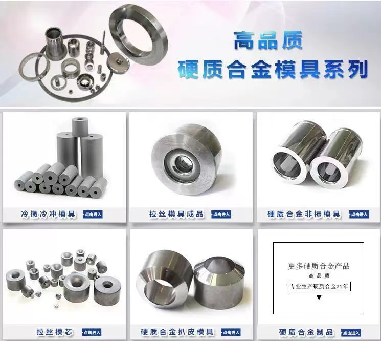 硬质合金钨钢模具、钨钢拉伸模具、钨钢粉末冶金模具、钨钢冷挤压模具、钨钢冷拔模具、钨钢耐磨耐高温配件、钨钢标准件模具、钨钢冷镦模具、钨钢热墩模具、冷冲压模具、钻石高精冷拔模具、钨钢轧辊模具、钨钢拔管模具、钨钢喷嘴、钨钢线嘴、钨钢伐片模具、钨钢研磨罐、钨钢冲头、钨钢异型模具
