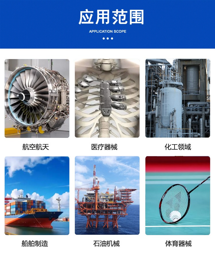 航空航天、医疗领域、化工和海洋工程、工业设备