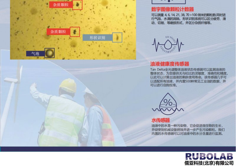 OIilCMS 系列便携式油液综合监测系统采用字成像智能铁谱技术,全面监测油液中的固体污染颗粒总数及尺寸分布,并对机械磨颗粒按照 疲劳磨损、滑动磨损及切削磨损进行智能分类,也能有效消除油液中的气泡及 滴对检测结果造成的影响;同时,内置油液使用寿命及水分检测传感器,面监 测设备的磨损状态及其润滑状态OilCMS_00.png