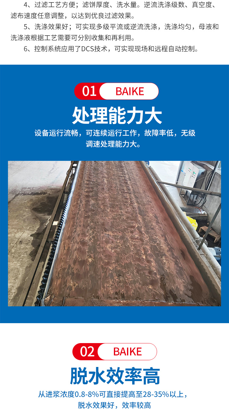 铜铁矿尾矿泥浆脱水设备 真空过滤机 含固率高脱水效果好