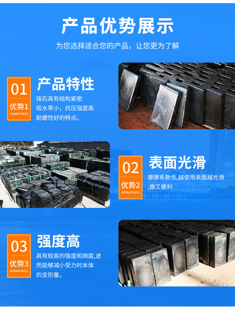 博萱耐磨 厂家定制 不易变形 玄武岩铸石板 可承接工程