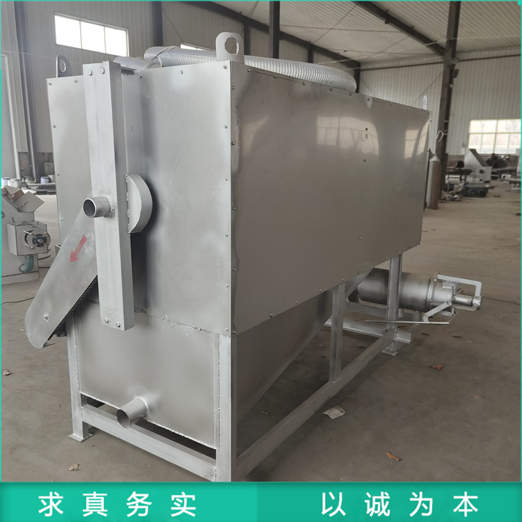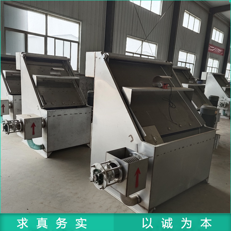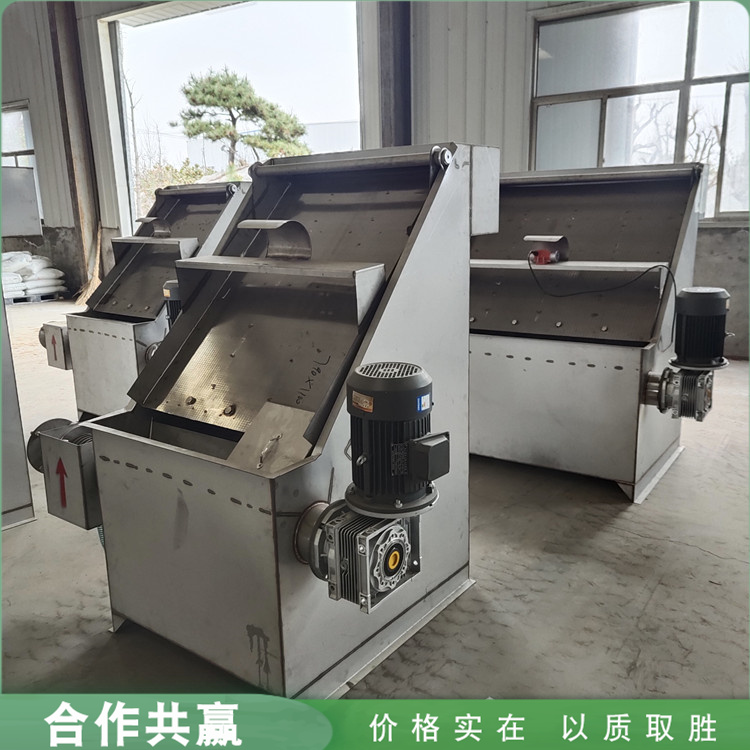 2、固液分离机的主要特点:该机体积小,转速低,占地少,自动化水平高,操作简单,维修方便,日处理量大,动力消耗低,适合连续作业。设备重量半吨左右且外形尺寸较小四脚均安装轮子方便移动,能大幅度提高鸡粪脱水处理的效率。