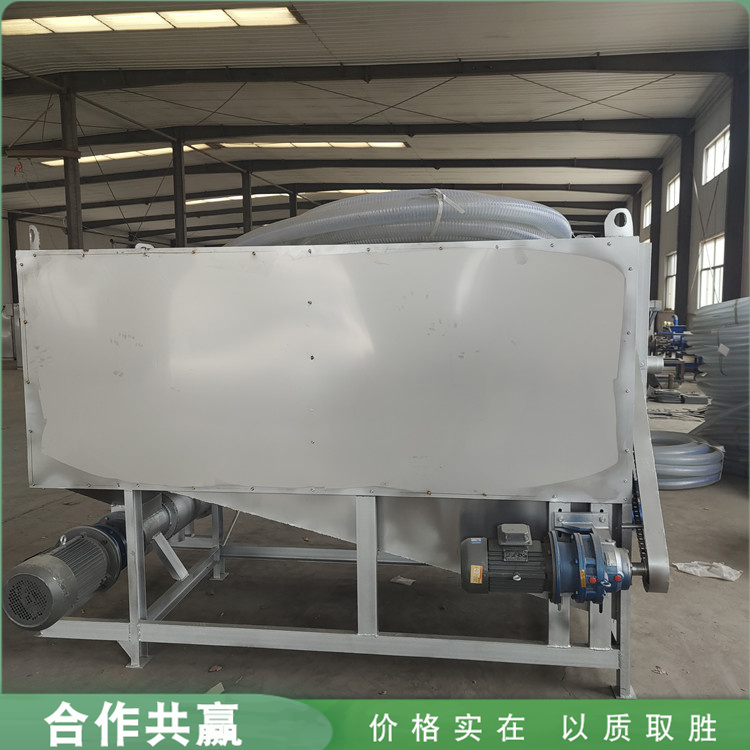 2、固液分离机的主要特点:该机体积小,转速低,占地少,自动化水平高,操作简单,维修方便,日处理量大,动力消耗低,适合连续作业。设备重量半吨左右且外形尺寸较小四脚均安装轮子方便移动,能大幅度提高鸡粪脱水处理的效率。