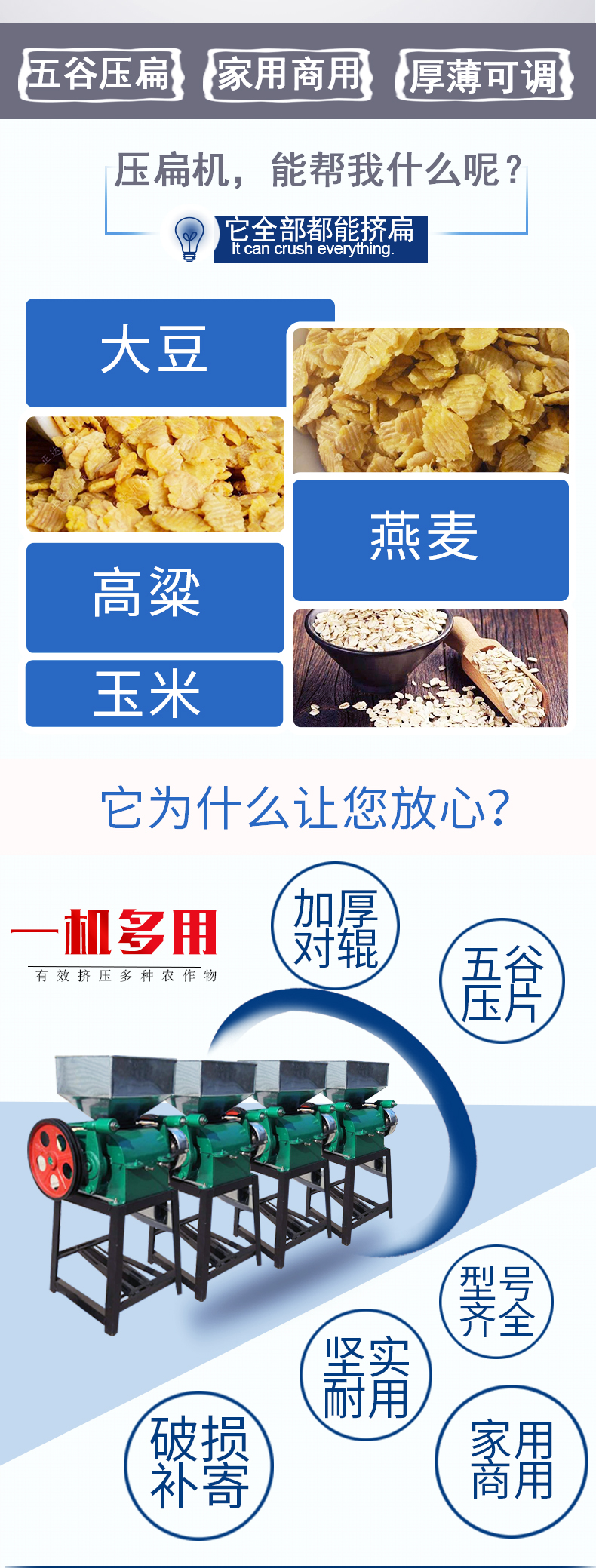 晨德 三相电破碎机 小型燕麦压片机 拉丝对辊黄豆挤扁机