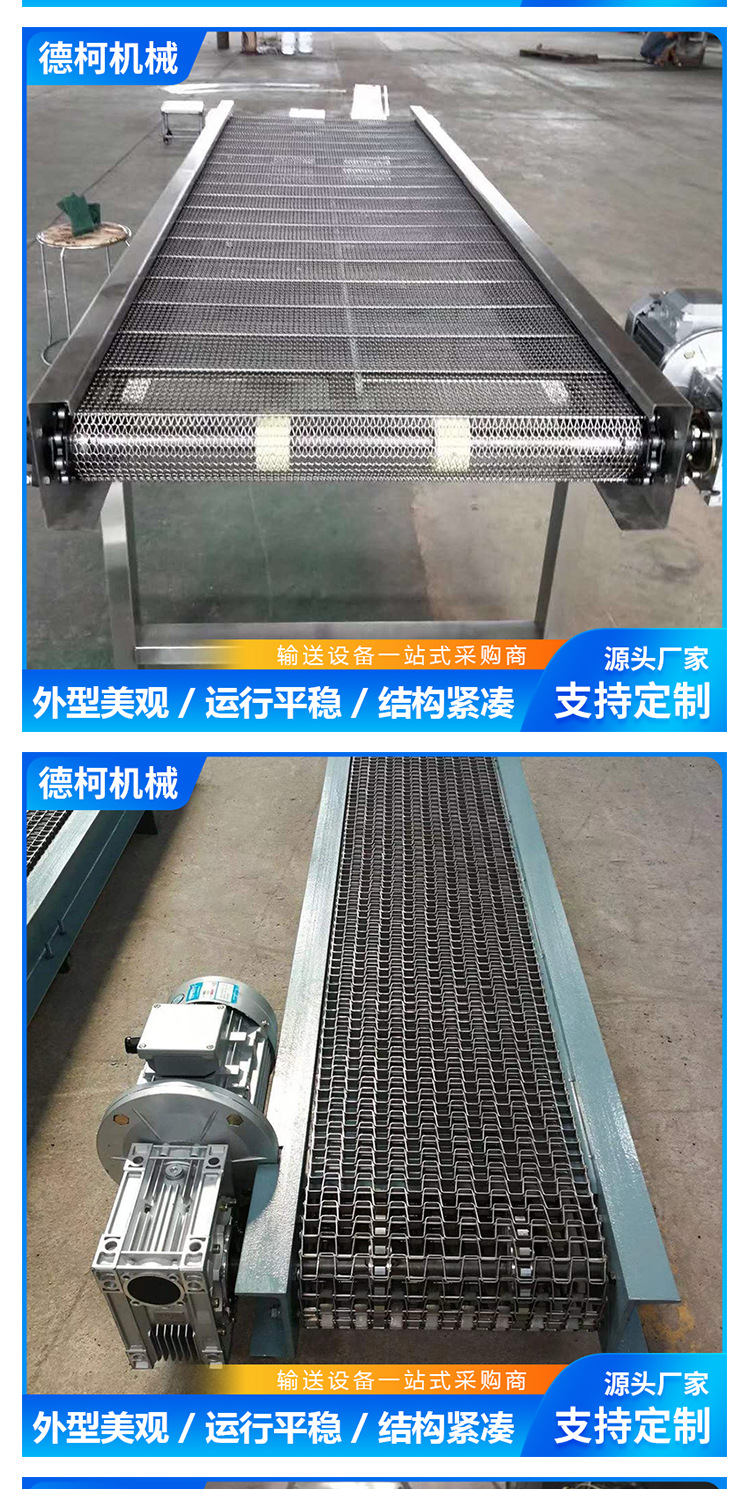 不锈钢网带输送机 人字形乙型网链输送线 耐磨运行平稳 德柯