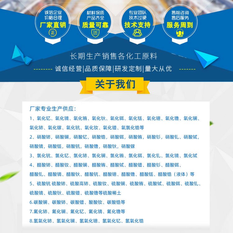 氯化钇、氯化铒、硝酸镨、硝酸镱、13494-98-9、13709-38-1、13770-61-1、10099-59-9、10361-79-2、氯化钆六、可用试剂、硝酸铕六、化学试剂、三氟化铈、分析试剂、硝酸铈铵、高纯试剂、氯化镝六、水氯化铈、称心满意、高纯高质、试剂六水、德盛稀土、cas.10361-82-7、六水硝酸铒