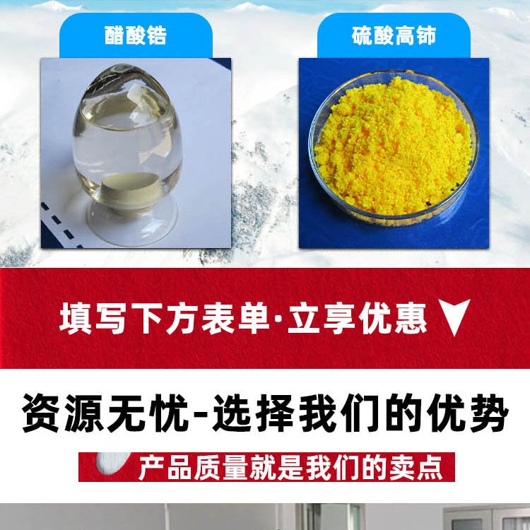 氯化钇、氯化铒、硝酸镨、硝酸镱、13494-98-9、13709-38-1、13770-61-1、10099-59-9、10361-79-2、氯化钆六、可用试剂、硝酸铕六、化学试剂、三氟化铈、分析试剂、硝酸铈铵、高纯试剂、氯化镝六、水氯化铈、称心满意、高纯高质、试剂六水、德盛稀土、cas.10361-82-7、六水硝酸铒