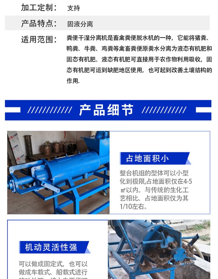 干湿固液分离设备 养殖场固液脱水机 可连续使用 处理量大出粪干