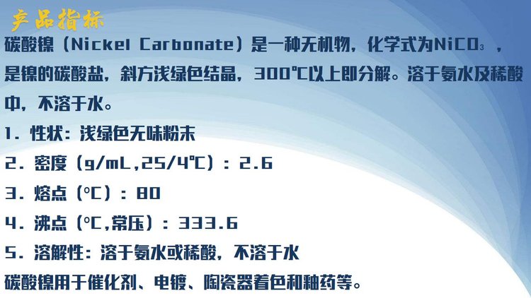 碳酸镍 98.5%含量 工业级 电镀 催化 陶瓷用 25公斤起发