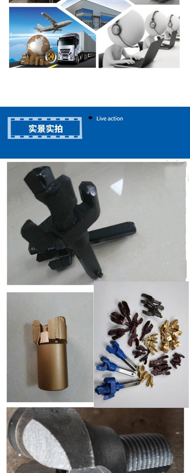 φ50mm矿用一字钻头 中空六棱钻杆钎头 风动凿岩机配件按需定做