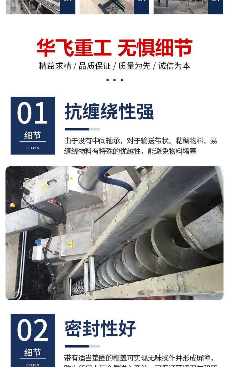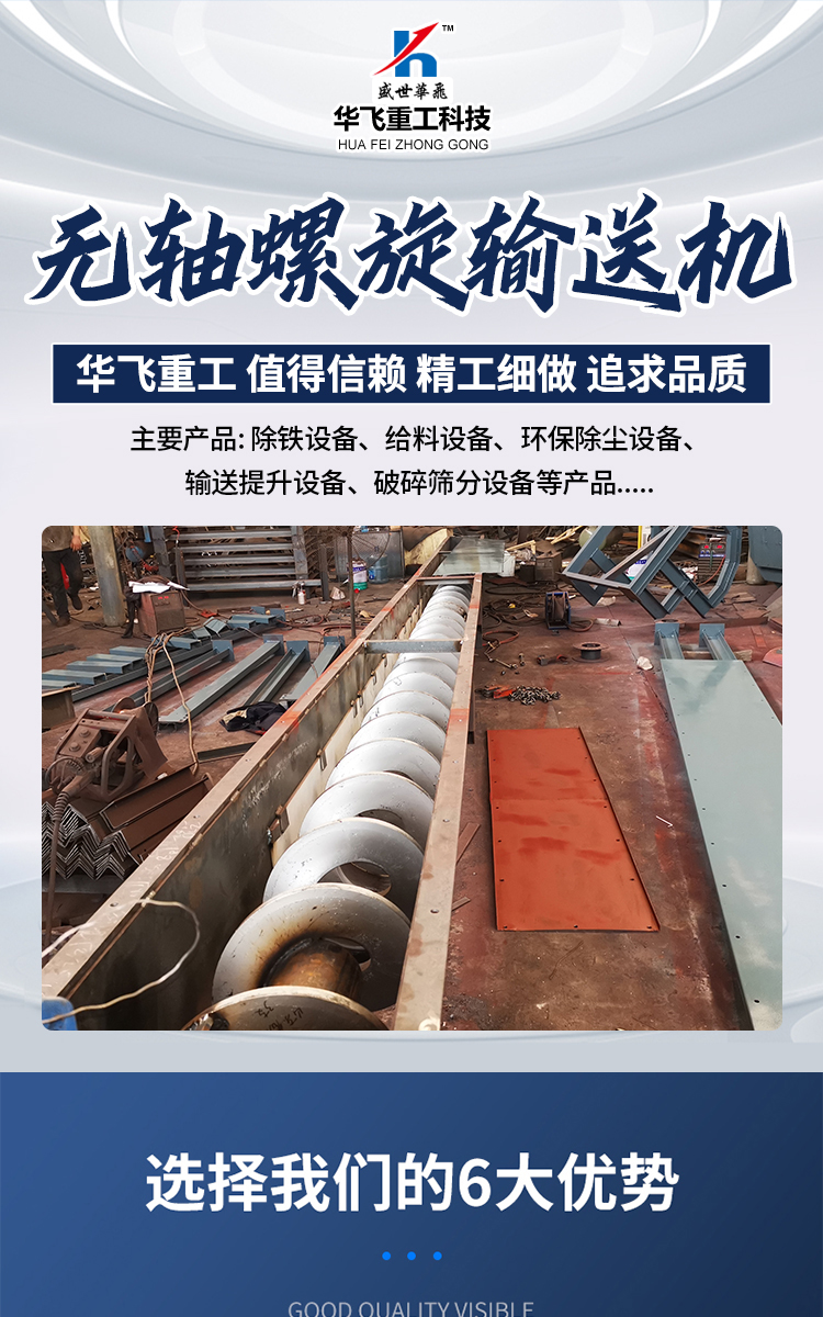 无轴螺旋输送机 不锈钢材质耐高温防腐蚀U型 华飞重工定做 HF82
