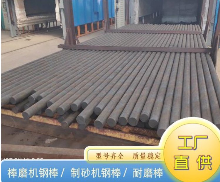 我公司生产耐磨钢棒的原材料均是来自于国内的大型钢厂,主要材质有:65Mn,60Mn,45号钢,40Cr,B2等十几种材料。生产工艺为:钢厂原材料中频炉加热---调直---淬火---高温回火---7m高跌落试验---合格出库