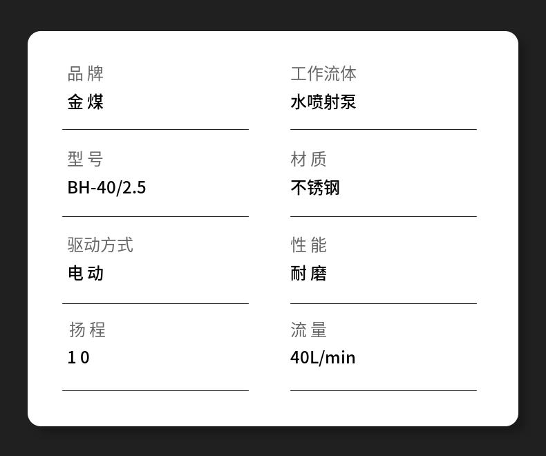 金煤厂家供应BH40/2.5矿用阻化灭火泵 水喷射泵