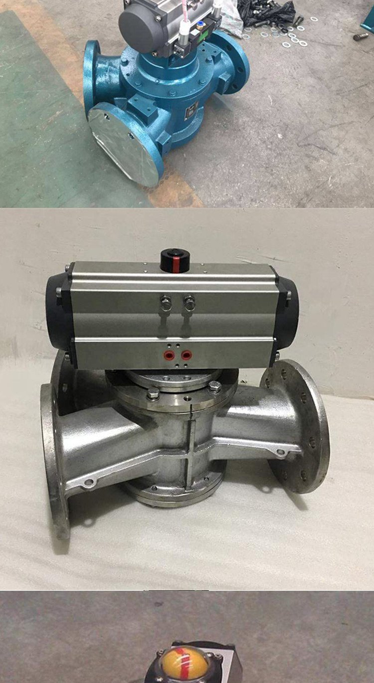 气动分路阀在输送系统中起着管路切换的作用,可以改变输送物料流向的作用,采用旋塞式结构,密封可靠,换向灵活。适用于粉料和颗粒物的方向切换。在控制方面,采用气缸或电动执行器带动旋塞换向,并安装磁性开关,指示并控制气缸换向,电磁换向阀控制进、排气,实现换向。