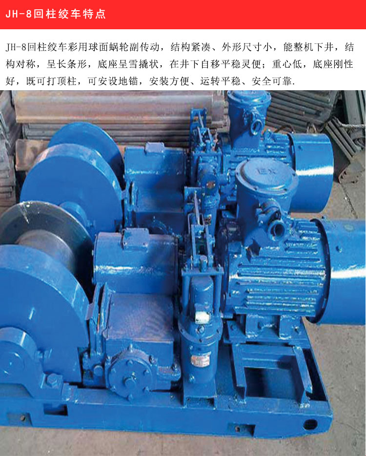 JH-8回柱绞车可安设地锚,安装方便、运转平稳、安全可靠