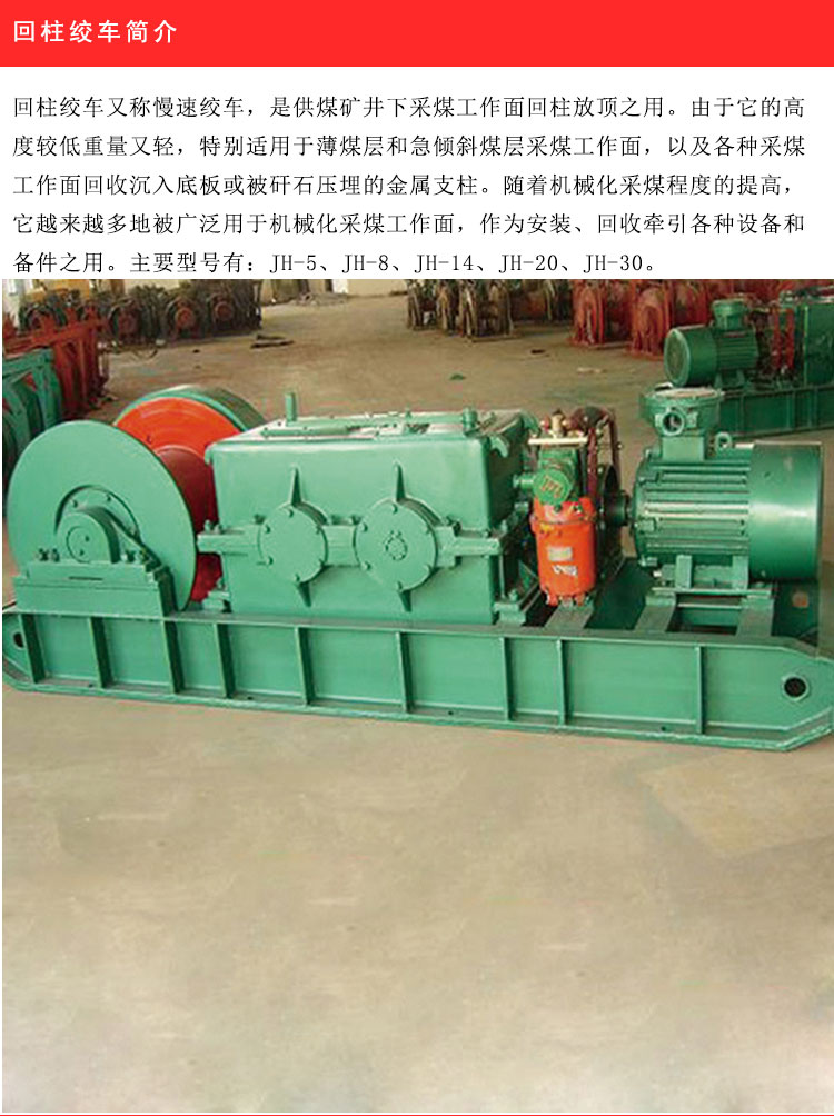 回柱绞车高度较低重量又轻 适用于薄煤层和急倾斜煤层采煤工作面