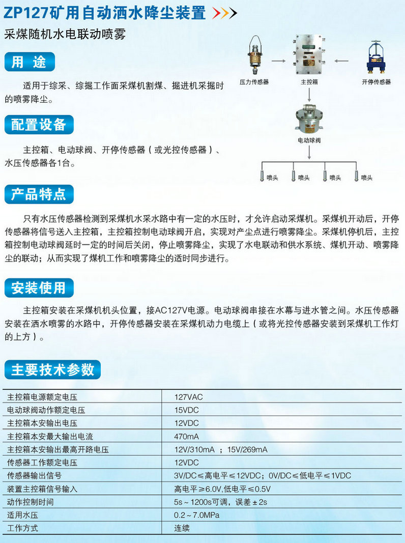 ZP127矿用自动降尘洒水装置 大巷定时 皮带机 掘进机 综采面喷雾