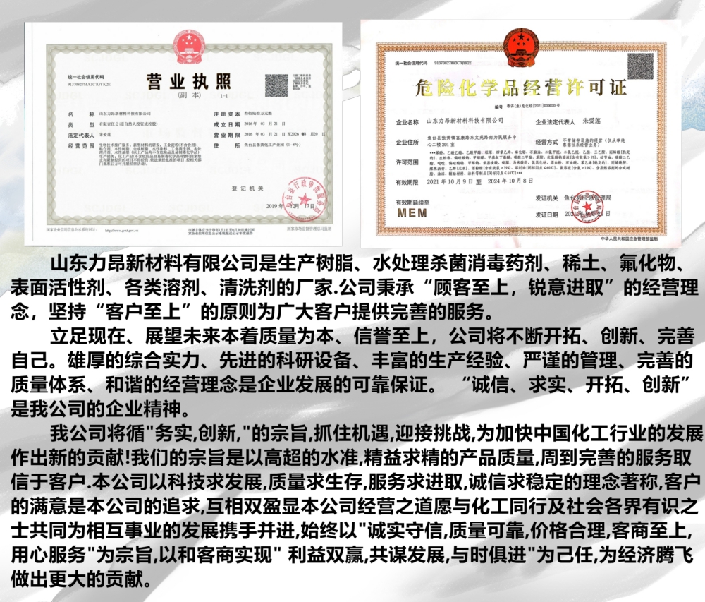 松香、水白氢化松香、乙烯脲、甲基丙烯酸缩水甘油酯、氟化稀土、氧化稀土、氯化稀土、碳酸稀土、硫酸稀土、硝酸稀土、水处理药剂、萜烯树脂、加氢萜烯树脂