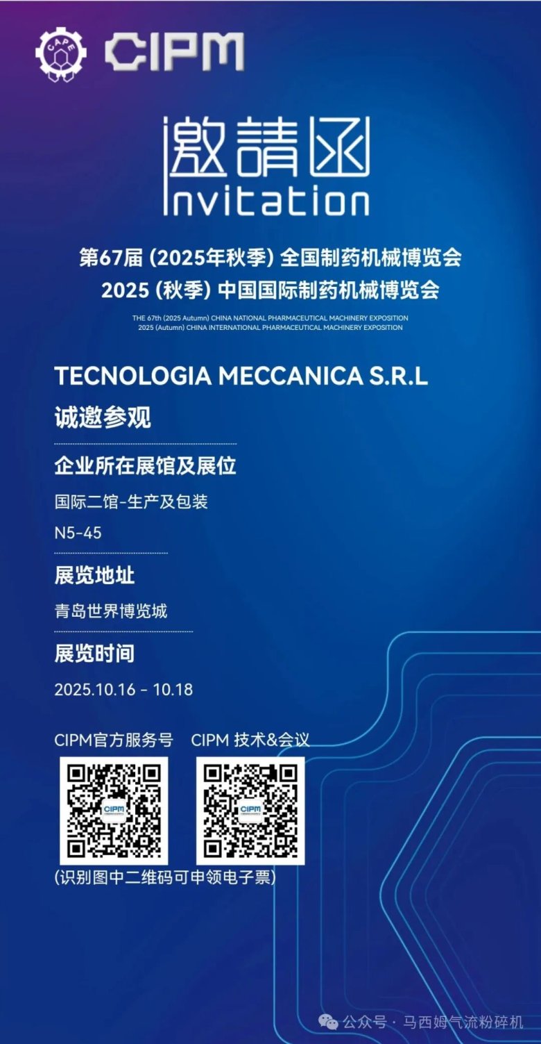 2025年10月16-18日,青岛药机展,马西姆气流粉碎机,一如既往,参会。