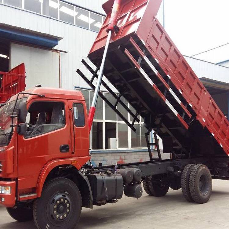 发动机通过变速器、取力装置驱动液压泵,高压油经分配阀、油管进入举升液压缸,推动活塞杆使车厢倾翻。以后向倾翻较普遍,通过操纵系统控制活塞杆运动,可使车厢停止在任何需要的倾斜位置上。车厢利用自身重力和液压控制复位。