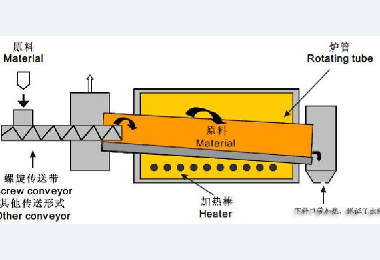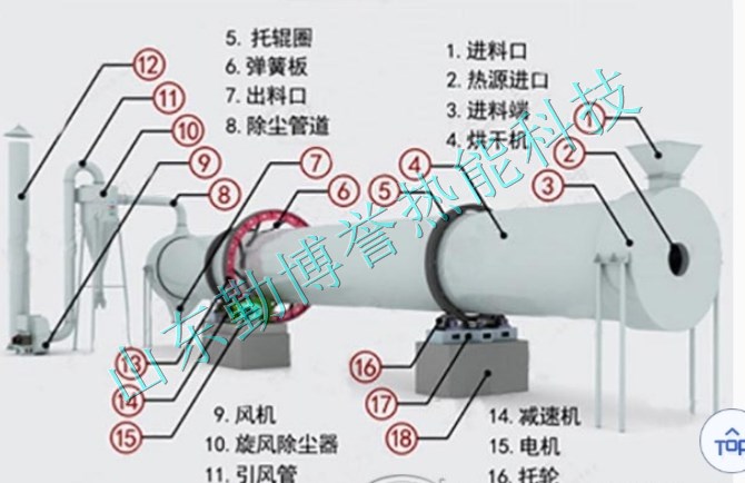 由加热热风箱产生的热空气为烘干热源介质,在物料由输送提升机送至螺旋加料器并进入主机的同时,物料与热风即接触并进行热交换,随着回转窑的转动,被干燥物料在引风的作用下,沿干燥室内壁的折曲并向前推进。