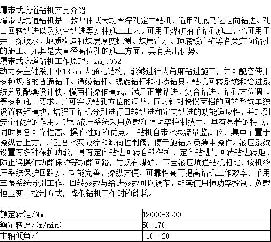 履带式坑道钻机 适用孔底马达定向钻进 孔口回转钻进